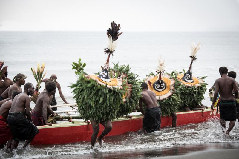 The National Mask Festival of Papua New Guinea held over three days is a unique exhibition of cultural dances, ritual performances and a variety of arts and crafts on display. The festival opens with the arrival of the “Kinivai” at dawn.